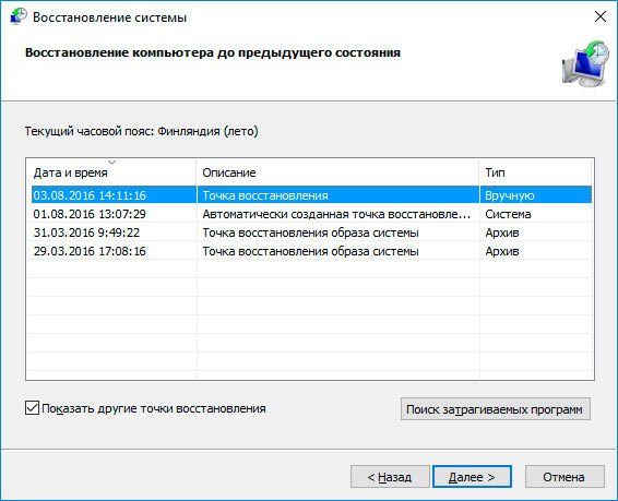 Откат системы или точки восстановления Windows
