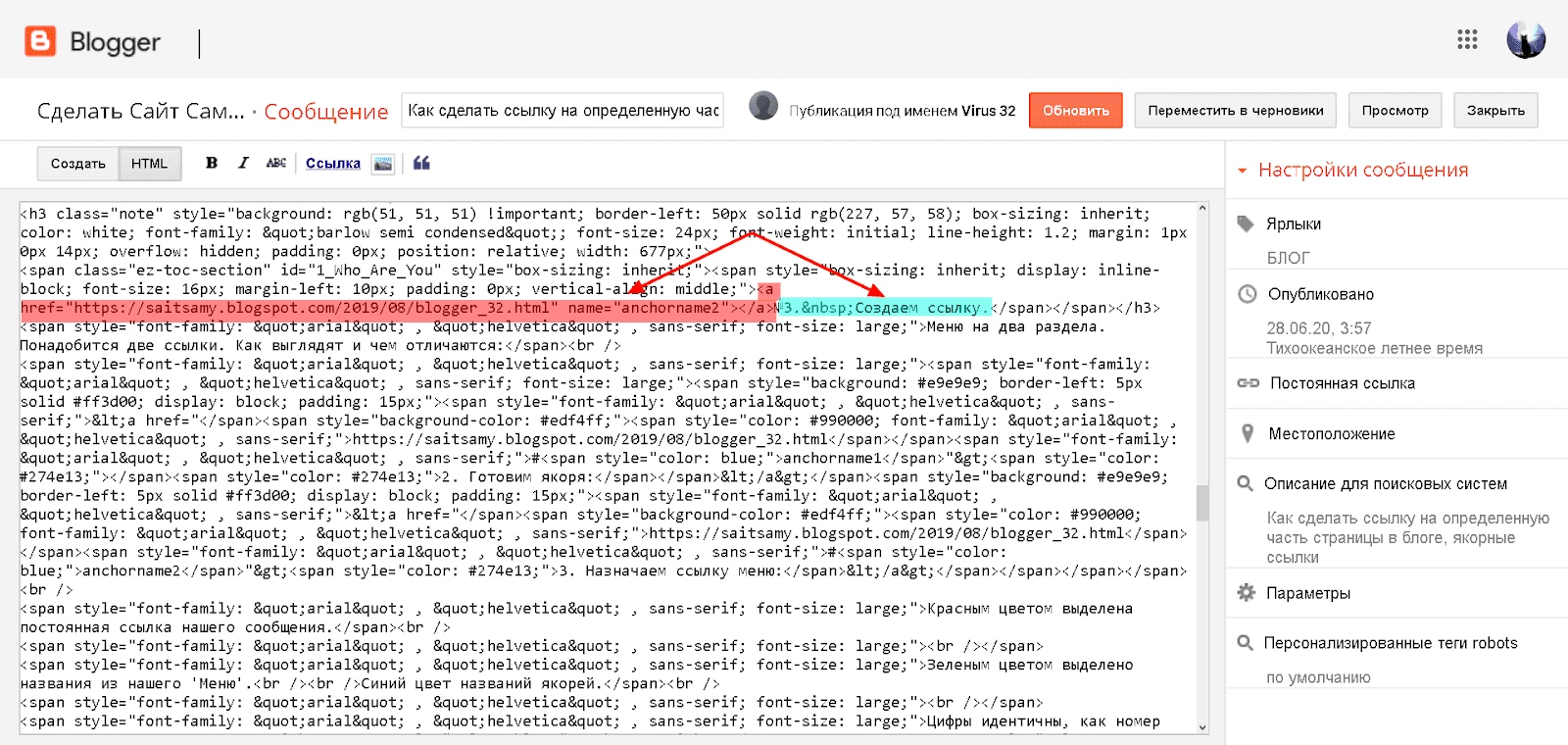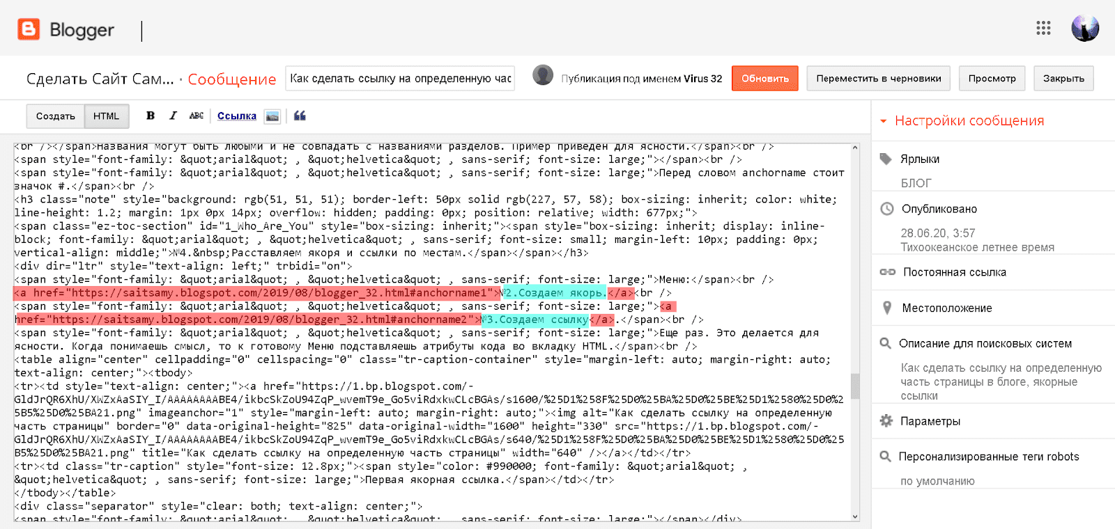 4. Как сделать якорную ссылку.