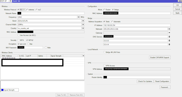 Не важно каким способом вы попали на интерфейс Mikrotik, выберите в меню «Quick Set» (это поле открыто по умолчанию). Справа в поле System нажмите кнопку «Reset Configuration«