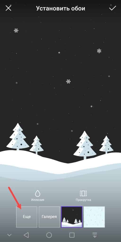 После этого необходимо подтвердить установку новых обоев нажатием на «галочку» в верхней строке экрана.